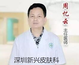 专家简介:周忆云,深圳新兴皮肤病医院皮肤科主任,毕业于中国医科大学,中华医学会皮肤病专业委员会会员,卫生部皮肤病防治小组特邀专家,从事皮肤病医疗、教学和科研工作多年,具有丰富的工作经验和较高的学术造诣。曾在国家级、省级期刊发表论文20余篇,其科研成果多次获奖,多次受邀出席亚太地区疑难皮肤病专业研讨会。