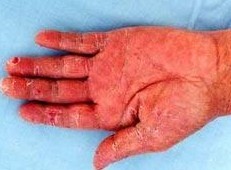 湿疹多发生在手掌心,且双手对称。皮损呈多形态,可见丘疹、水疱、糜烂、渗液和结痂等同时存在,常以其中二至三种为主。病情变化与季节关系密切,与饮食和休息也有一定关联。如果双手掌接触水和肥皂等刺激会加重损害。真菌检查为阴性。