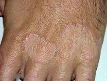 如处理不当可继发细菌感染,形成化脓性皮疹,患者有疼痛感;浸渍糜烂型也比较常见,而且常常为足癣的首发表现,如足趾间皮肤浸渍发白,继而剥脱,自觉瘙痒,常常导致搔抓,使表皮剥脱,露出其下新鲜嫩薄皮肤,一般夏重冬轻,足汗较多者,冬季也可以发生。长期不愈的趾间糜烂往往会继发链球菌感染而形成丹毒,是下肢丹毒的常见病因。
