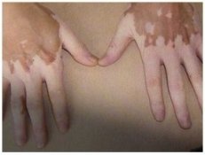 病情描述:手指、脚背、前胸皆大面积白斑,皮损严重,尤其是面部直接影响了他的心理健康,平时不愿意社会交往,自卑、孤独、封闭,思想压力重、沉没寡言。