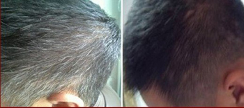 18岁时家人偶然发现起头发中夹杂白色头发,从发根处开始变白,而后发现白发增多且发质变得较以前干枯无光泽,用染发剂可遮掩一段时间 但过几个月又仍需再次染发以遮盖白发,心中十分苦恼.经朋友介绍来院就诊,在医生根据其具体病情选用最佳治疗方案后开始治疗,用药2个疗程再次来院 时检测结果显示已显见其效,原白发从发根处变灰变黑,色泽也较以前黑亮.