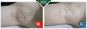 徐小姐 20岁 双侧腋下异味多汗4年余,自行涂药3年无明显效果,且致腋下皮肤粗糙,颜色变黄变黑,2年前她去医院行激光治疗数月后复发,且术后1年前于另一家医院行注射治疗无明显效果,恐惧手术,烦恼异常。
