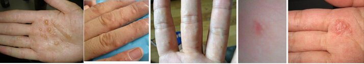 现今已经证实它和汗腺、流汗这些因素都没有关联。其临床表现为深在性小水疱,粟粒至米粒大小,略高出皮肤表面,常无红晕。对称发生于掌跖及指(趾)侧。1-2周后干涸成屑,并可反复发生,伴不同程度的灼热及瘙痒,常连续发作数年。