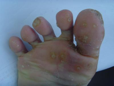 2、手术治疗:采取手术切除或腐蚀的方法去除跖疣的角质皮层。