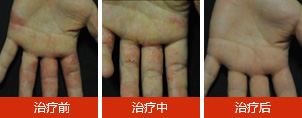 治疗前:陈先生,安徽人,今年29岁,患有湿疹近3年,为了治好湿疹,也寻求了不少医院,吃过的药不知道有多少种,花了几万元的医疗费,结果无济于事。